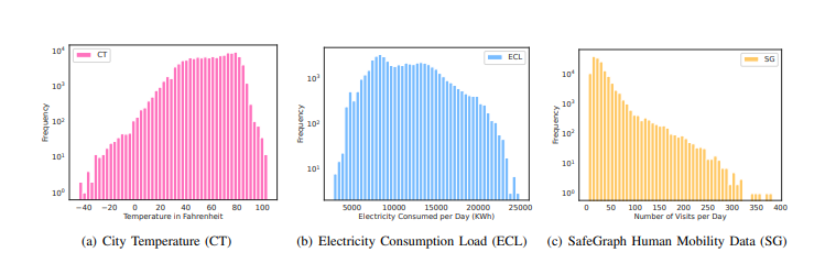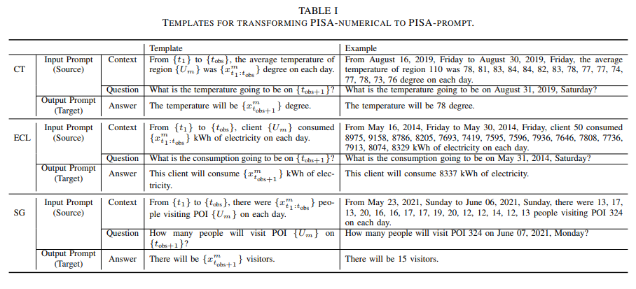 연구에 동일한 Template을 적용하기 위해 저자는 PISA라는 대규모 시계열 데이터셋을 제공한다. PISA는 세 개의 서로 다른 시계열 데이터셋을 통일된 형식으로 변환하여 결합한 데이터셋이다. 이 데이터셋은 각각 CT(City Temperature), ECL(Electricity Consumption Load), SG(SafeGraph Human Mobility Data)로 구성되어 있다. PISA를 구성하는 각각의 데이터셋에 대해 설명하겠다.